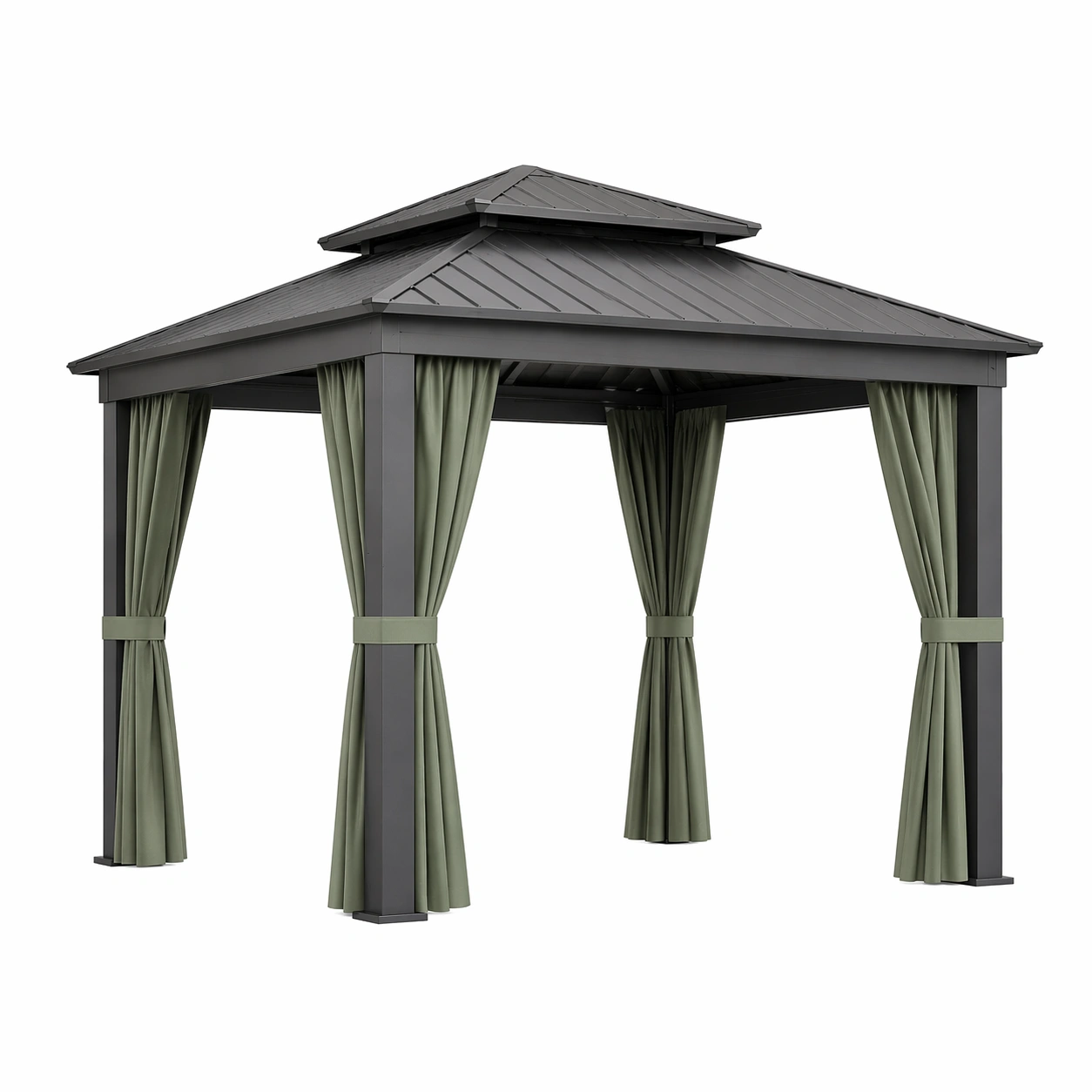 Pavillon metall aluminiumrahmen stahlblechdach grau grün